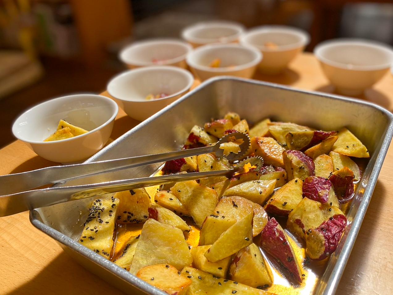 しっかりアク抜きをしたさつま芋を油で揚げ、甘いタレを絡めたお芋、美味しかったですね。『また作ってね』の声が聞けました♪