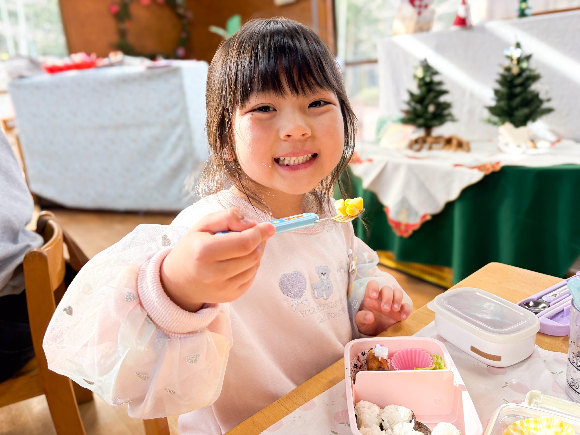 みんな嬉しそうに、自慢のお弁当を見せてくれました